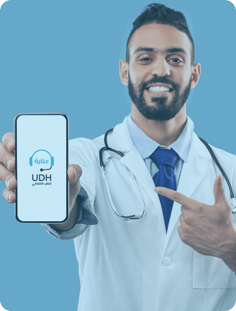 لأنك تستحق رعاية طبية سهلة وآمنة، توفرها لك عناية UDH للطب الاتصالي عبر استشارات عن بُعد تغطي مختلف التخصصات، يقدمها نخبة من الأطباء المعتمدين، وفي بيئة رقمية تضمن الخصوصية، السرعة، والجودة التي تطمئن لها.
